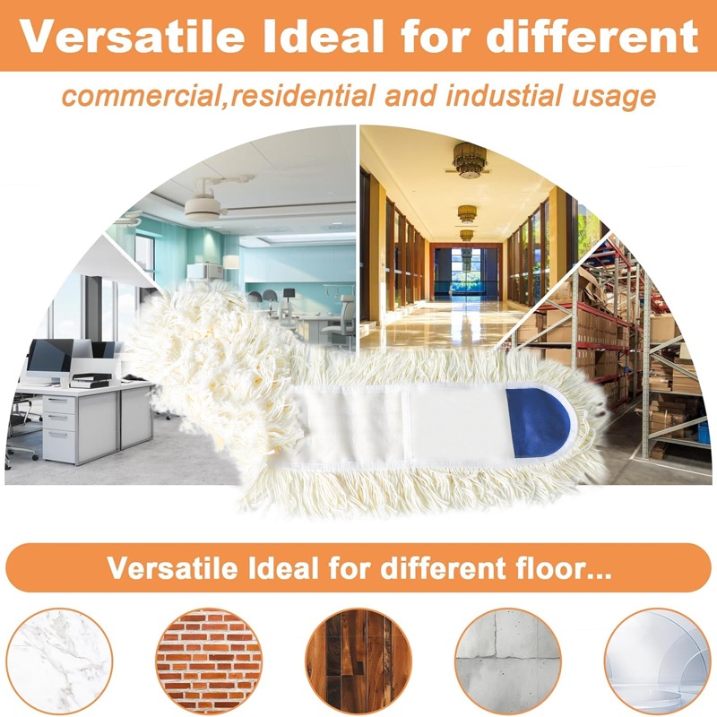 HOGE KWALITEIT REINIGING: Deze navulling voor de vloermop is gemaakt van hoogwaardig natuurlijk katoenen garen om een ​​superieure reinigingservaring op alle oppervlakken te garanderen - inclusief hardhouten vloeren - voor industriële, commerciële en residentiële omgevingen. Zeg hallo tegen smetteloze, sprankelende vloeren!