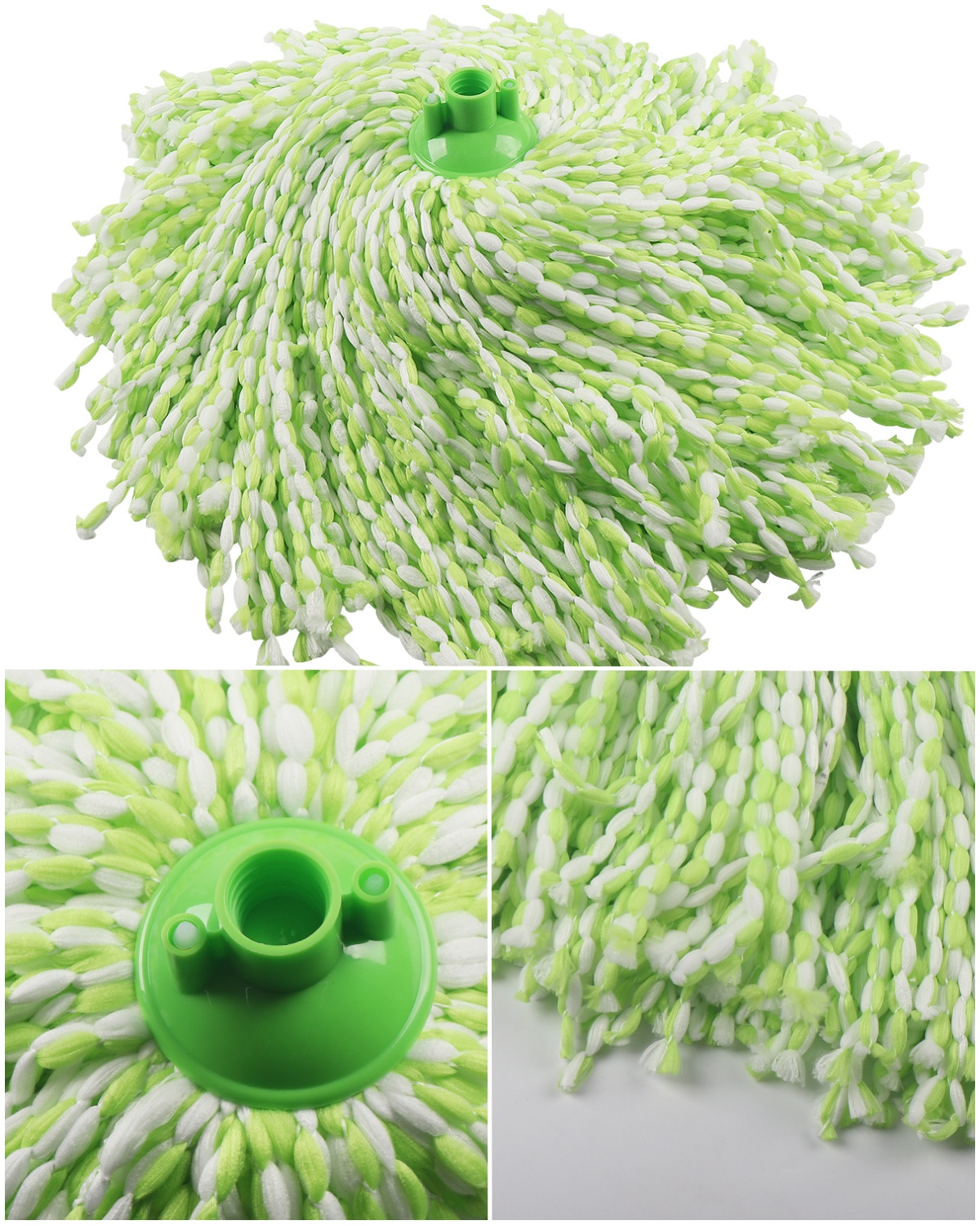 Deze levendige groene en witte microvezel-draaimopkop combineert een opvallend ontwerp met professionele reinigingsprestaties. Het is gemaakt van hoogwaardig microvezelgaren met een bijpassende groene plastic huls en levert een uitzonderlijk absorptievermogen, diepe reinigingskracht en langdurige duurzaamheid. Perfect voor zowel residentieel als licht commercieel gebruik en ontworpen voor de meeste standaard mopstelen.