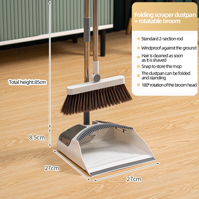 Handige rechtopstaande opslag: het clip-on-ontwerp kan de bezem en Dumper rechtop worden bewaard, ruimte besparen en veiligheid waarborgen! Compact opslagontwerp houdt uw huis of werkruimte schoon en netjes. Geschikt voor verschillende oppervlakken en ideaal voor gebruik binnenshuis