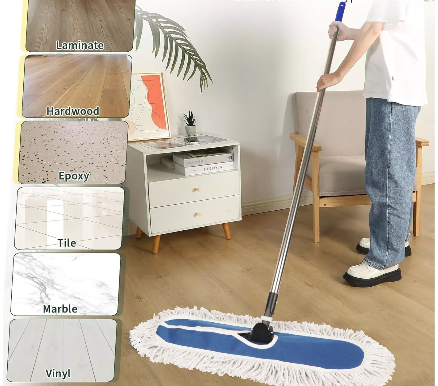 Het vinden van de beste dweil voor u hangt af van verschillende factoren, maar het type vloer is ook een factor. Als u hardhouten vloeren heeft, wilt u misschien een microvezel dweil of een stoomwop gebruiken, omdat deze mops de vloer reinigen met zeer weinig vocht, die de afwerking kan beschadigen en de houten vloerbuil kan maken. Tegel- en vinylvloeren kunnen worden gereinigd met een natte dweil, dus een traditionele touwwop en emmer werken ook goed.